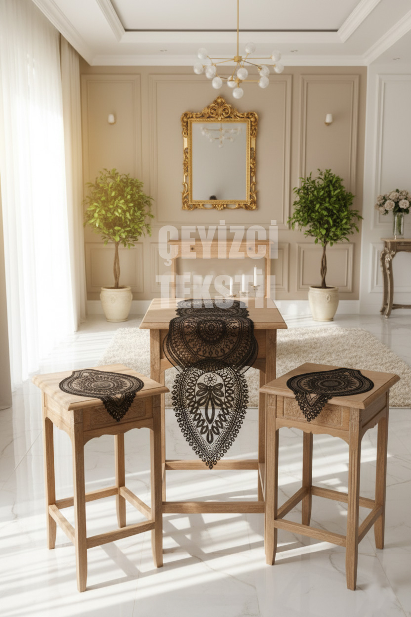 Salon Takımı, Yatak Odası 3 Parça Sehpa Örtüsü, Masa Örtüsü 3 Parça Oda Takımı
