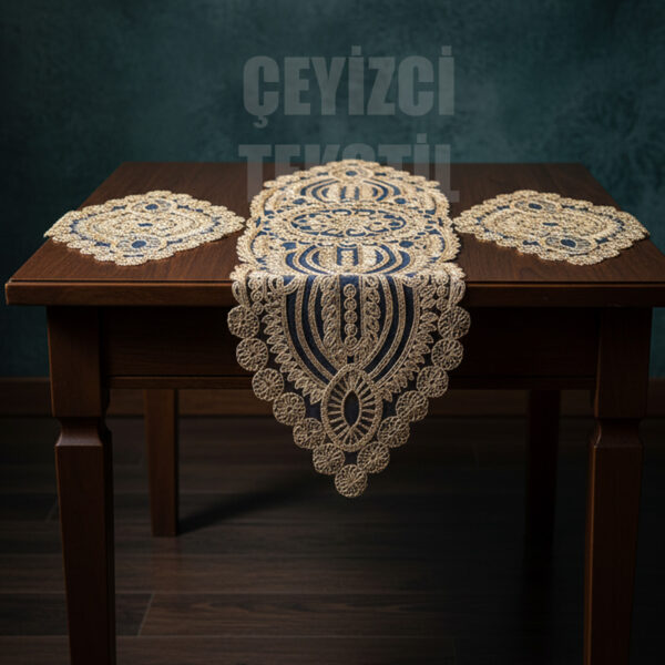 Salon Takımı, Yatak Odası 3 Parça Sehpa Örtüsü, Masa Örtüsü 3 Parça Oda Takımı – Gold Simli