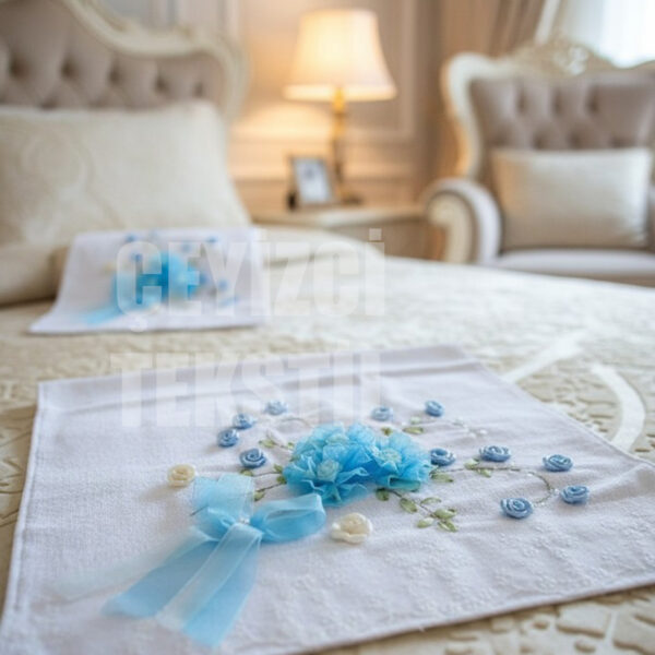 Kadife Çeyizlik Havlu, Nişan Havlusu Kadife Kurdelalı, Kurdele İşi Dantelli Havlu