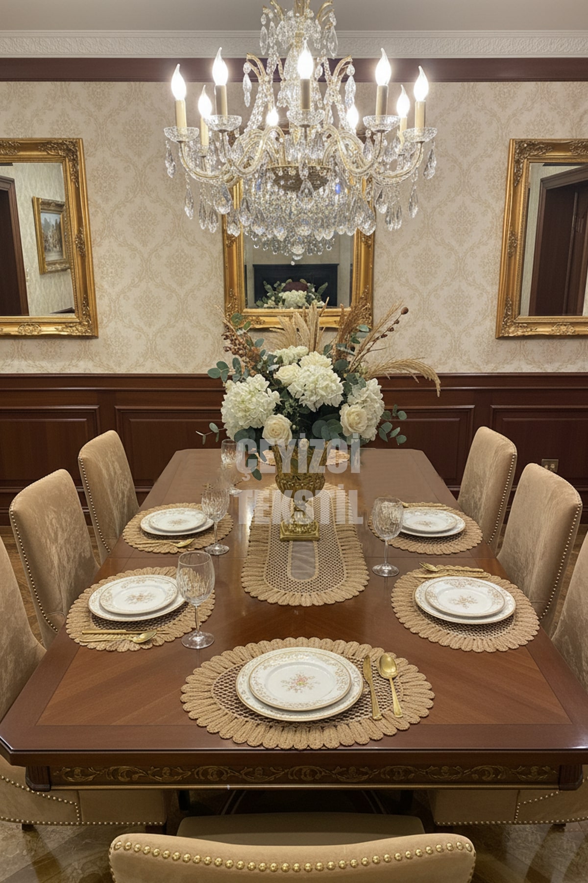 Amerikan Servis, 1 Runner 6 Supla Yemek Servis Takımı, Masa Örtüsü Seti, Servis Sunum Seti