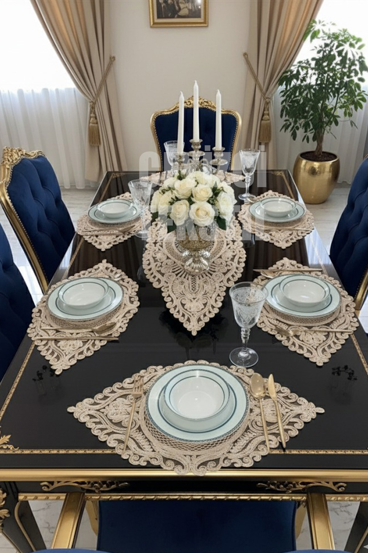6 adet 32×50 cm Amerikan servis supla + 110x30cm runner set