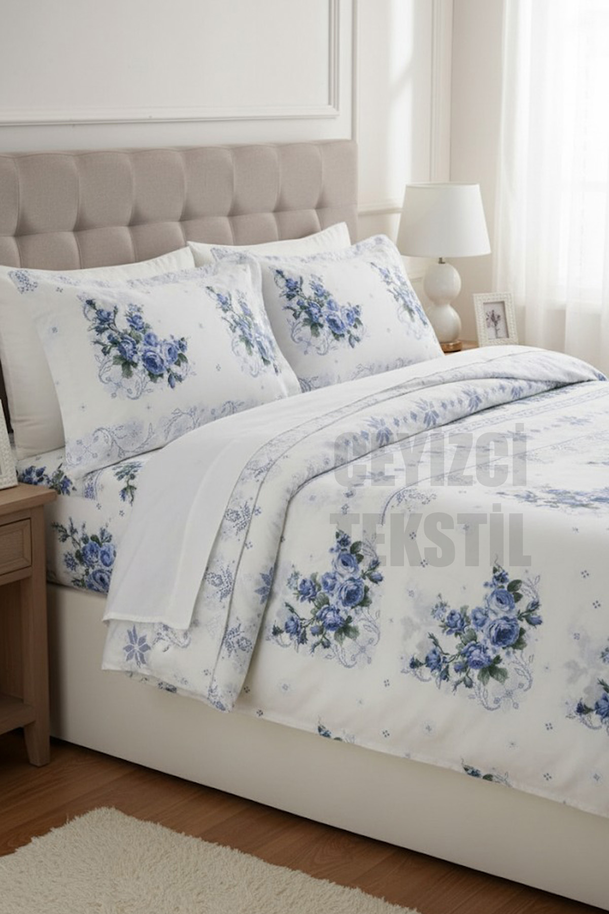 Çift Kişilik Nevresim Takımı Mavi Çiçek