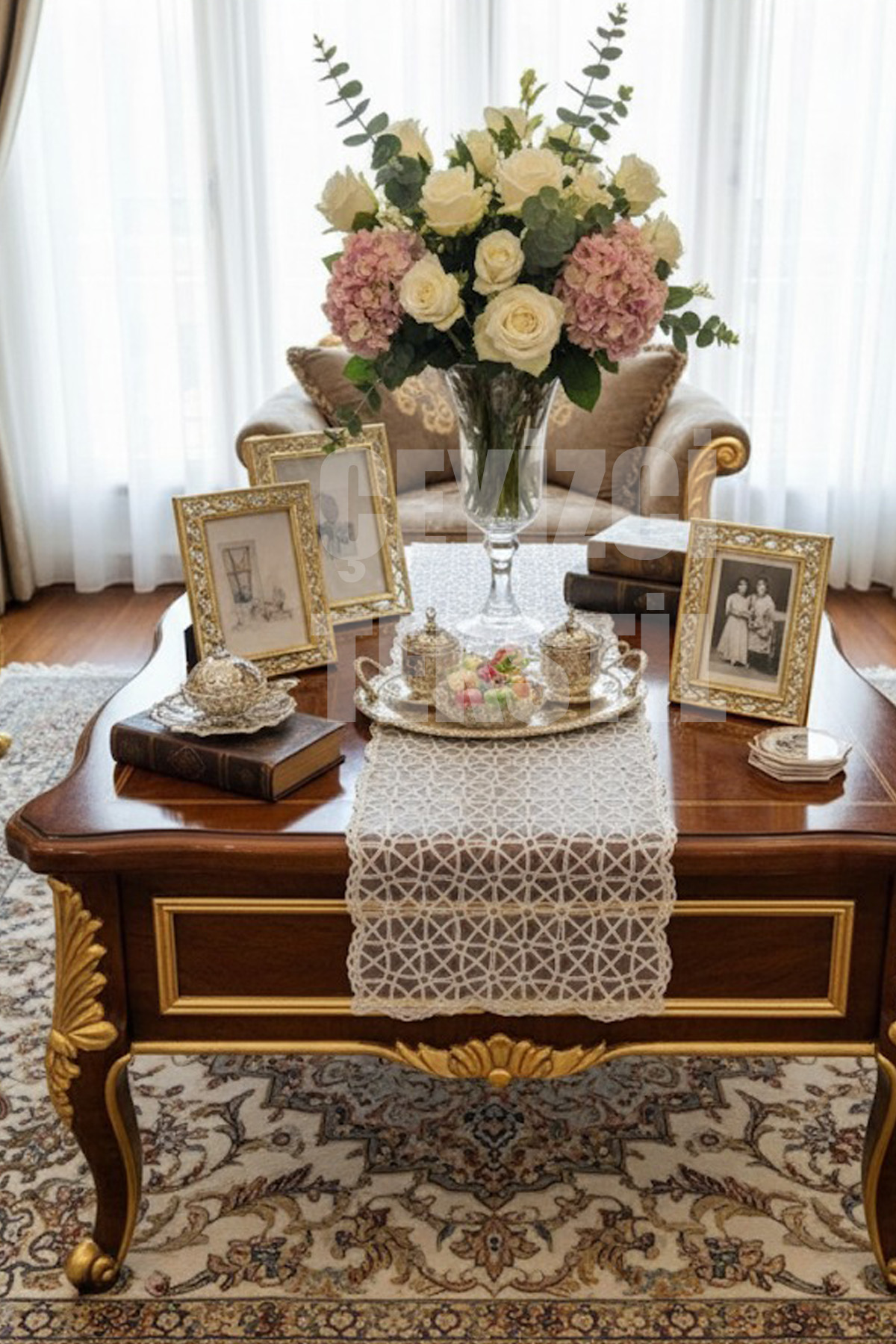 Fransız Dantel Detaylı Tek Runner, Masa Üzerine Runner, Masa Örtüsü Runneri