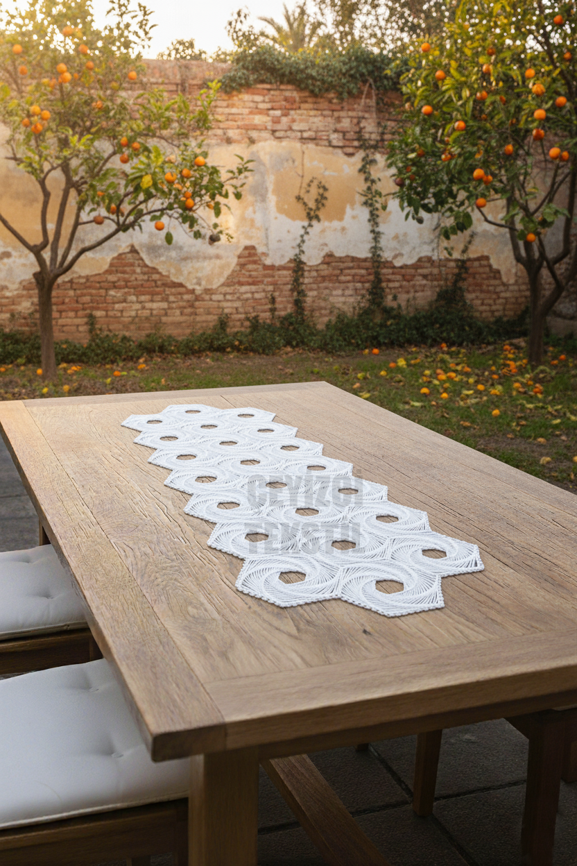Fransız Dantel Detaylı Tek Runner, Masa Üzerine Runner, Masa Örtüsü Runneri
