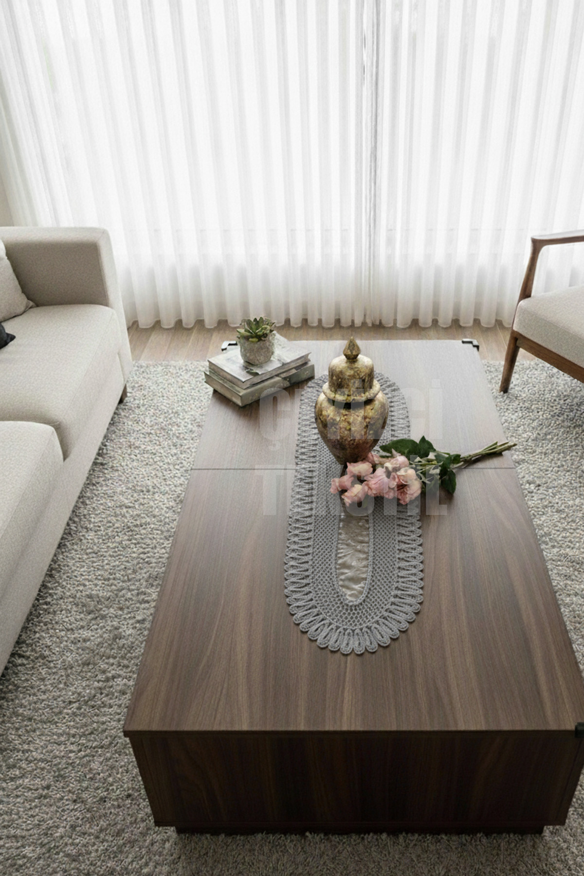 Fransız Dantel Detaylı Tek Runner, Masa Üzerine Runner, Masa Örtüsü Runneri