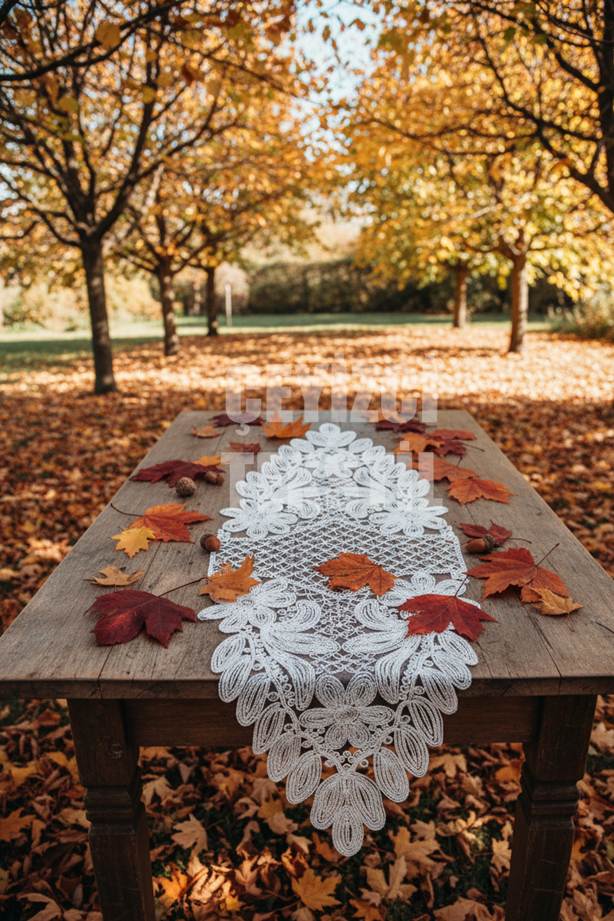 Fransız Dantel Detaylı Tek Runner, Masa Üzerine Runner, Masa Örtüsü Runneri