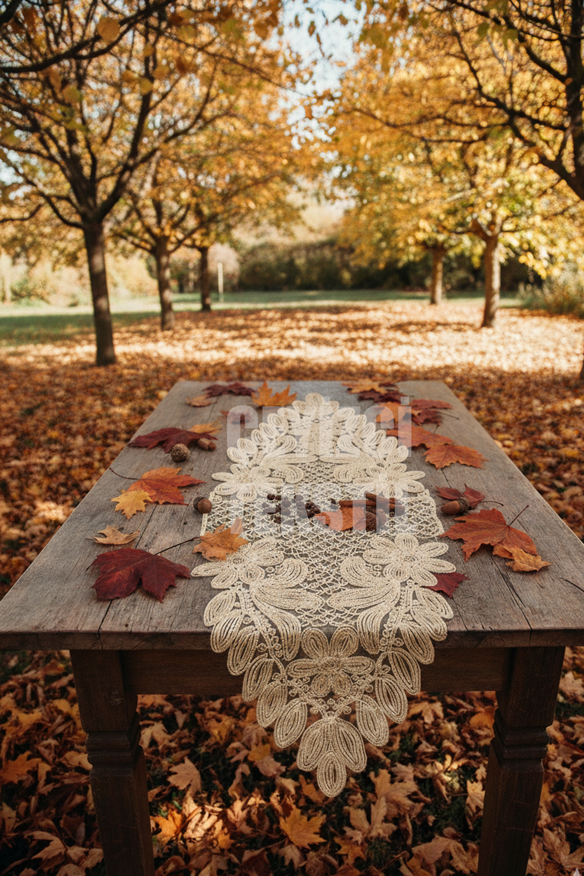 Fransız Dantel Detaylı Tek Runner, Masa Üzerine Runner, Masa Örtüsü Runneri