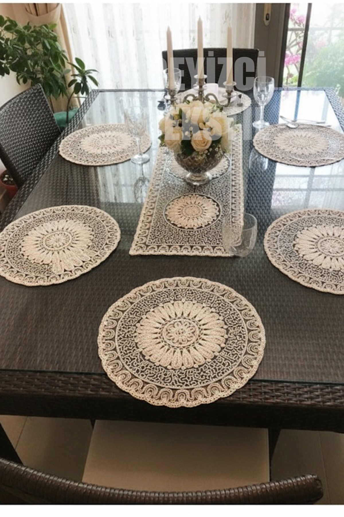 Amerikan Servis, 1 Runner 6 Supla Yemek Servis Takımı, Masa Örtüsü Seti, Servis Sunum Seti