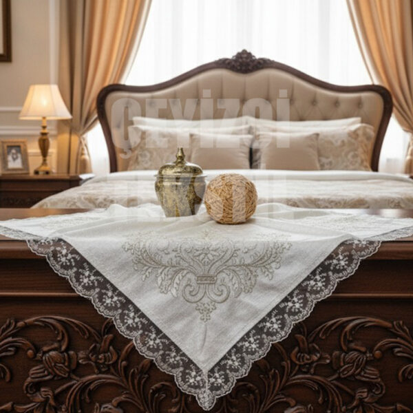 Fransız Güpürlü Işlemeli, Çeyizlik Saten Lüks Bohça, Nişan Bohçası