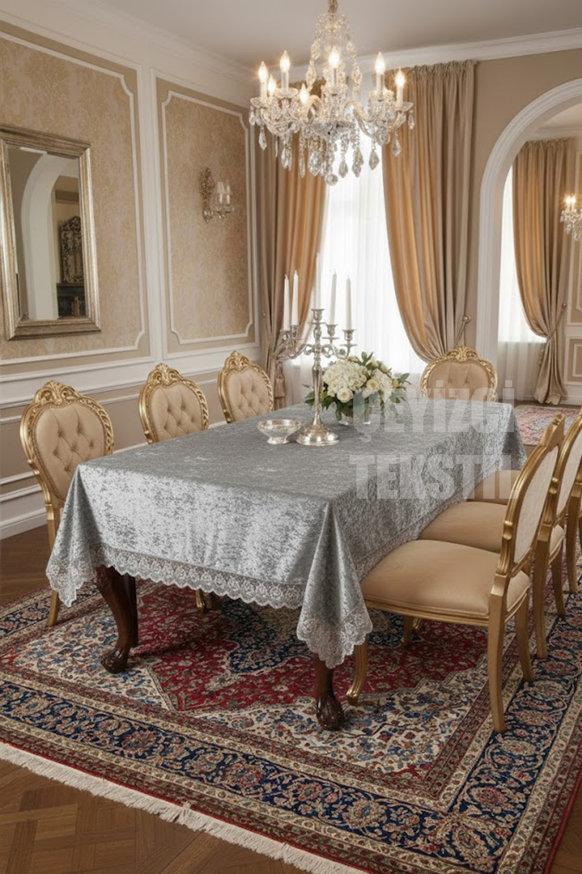 Kadife Masa Örtüsü Fransız Dantelli, Lüks Kadife Masa Örtüsü Dantelli