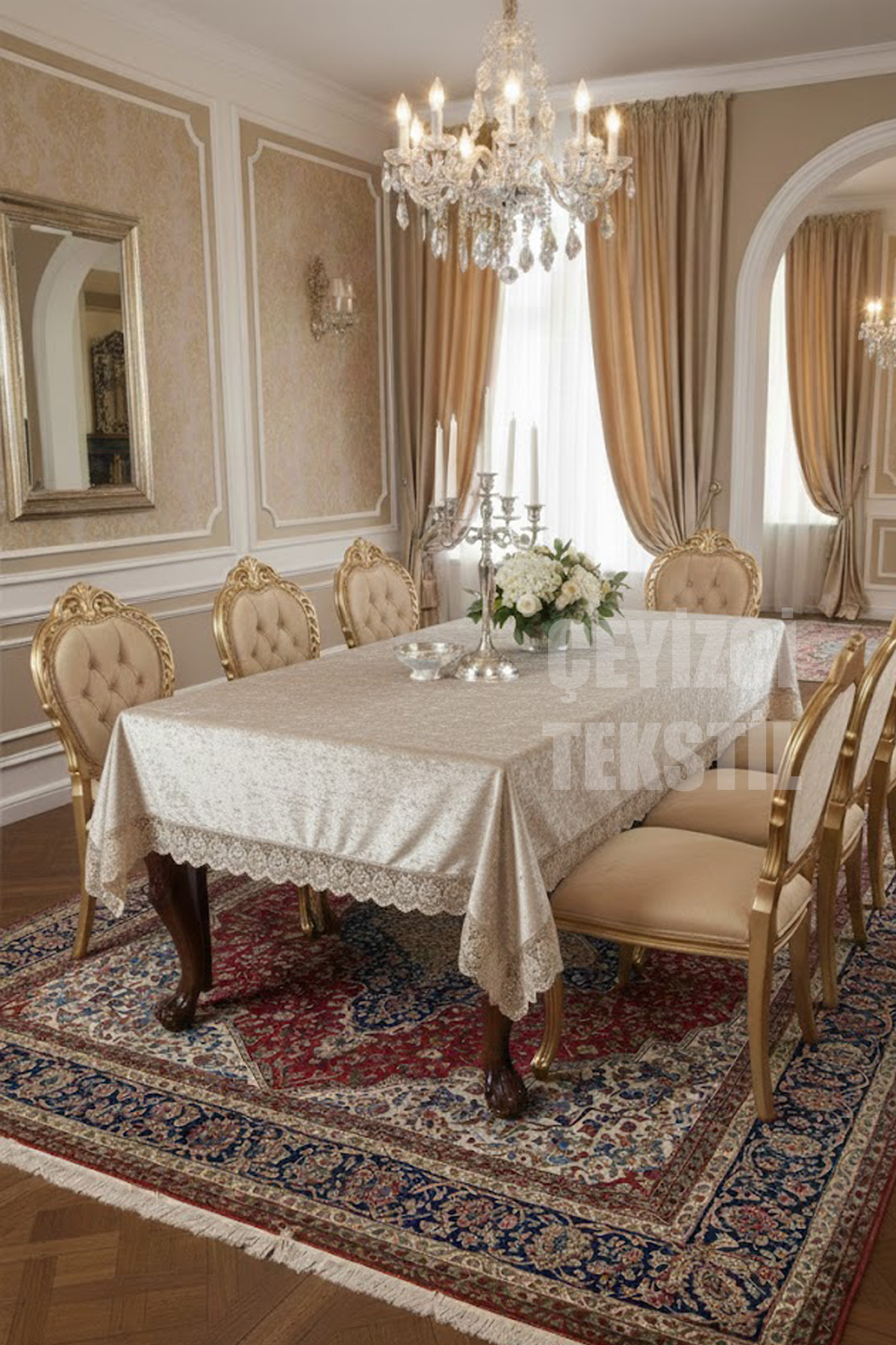 Kadife Masa Örtüsü Fransız Dantelli, Lüks Kadife Masa Örtüsü Dantelli
