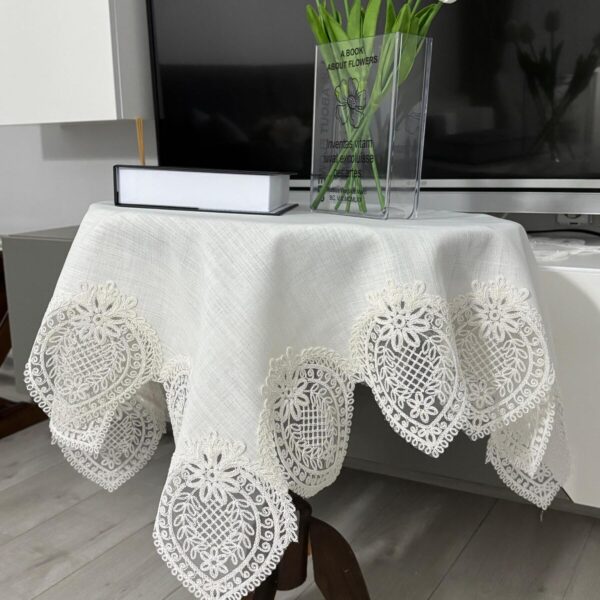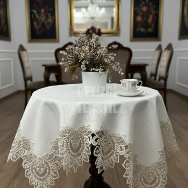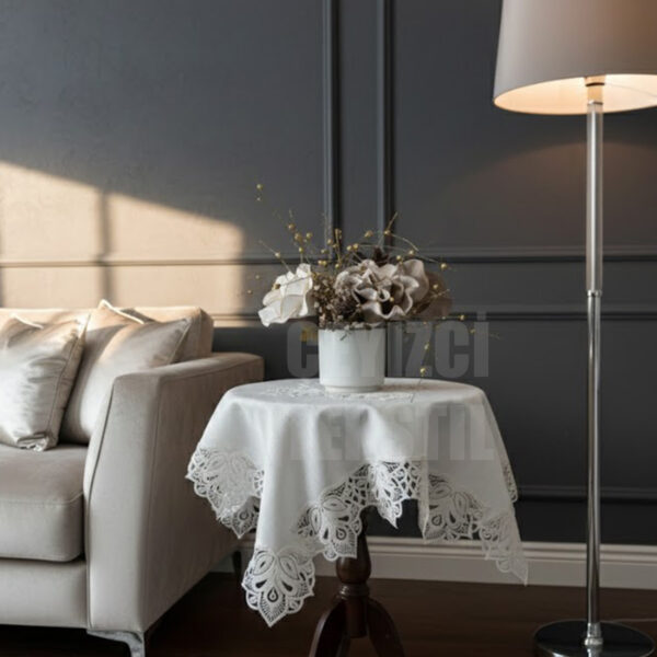 Fransız Dantelli Keten Fiskos, Gardenya Kumaş Fiskos 100x100cm
