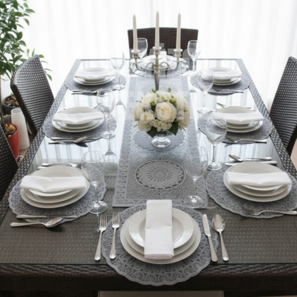 Orijinal fiyat: ₺449,00.₺219,00Şu andaki fiyat: ₺219,00.Fransız Dantelli Runner Ve Supla Takımı (1 Runner, 6 Supla) Gri