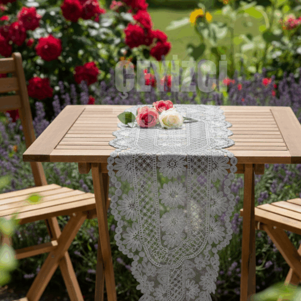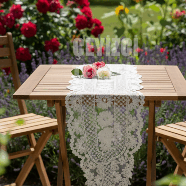 Fransız Dantel Detaylı Tek Runner, Masa Üzerine Runner, Masa Örtüsü Runneri