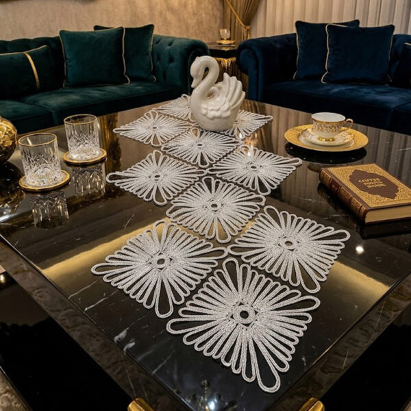 Fransız Dantel Detaylı Tek Runner Gri, Masa Üzerine Runner, Masa Örtüsü Runneri