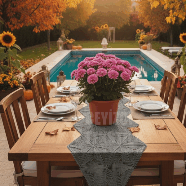 Fransız Dantel Detaylı Tek Runner, Masa Üzerine Runner, Masa Örtüsü Runneri