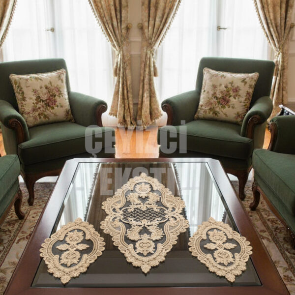 Fransız Dantelli Runner ve Supla Takımı (1 Runner, 6 Supla) Kapuçino