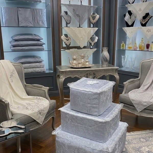 İncili Bohça, İncili İşlemeli Gelin Bohçası, Nişan Bohçası – Gri Renk