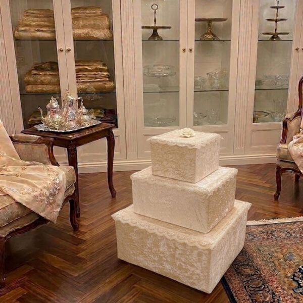 Kadife Çeyizlik 3lü Hurç Takımı, Gelin Hurcu 3lü Set, Gelin Hurç Seti, Kadife Nişan Hurcu – Krem