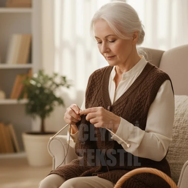 Çeyizlik Yelek, Simsiz Yelek, Örgülü Yelek, Hediyelik Yelek, Gelin Yeleği – Geniş Beden – Kahve