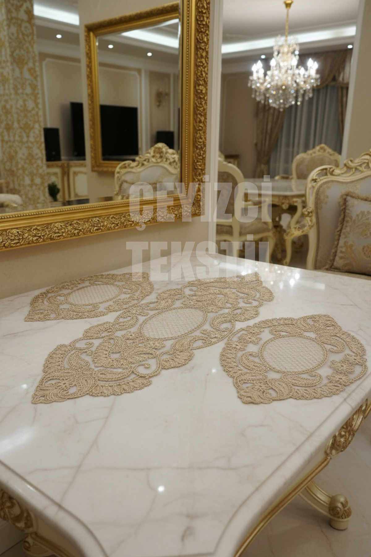 Salon Takımı, Yatak Odası 3 Parça Sehpa Örtüsü, Masa Örtüsü 3 Parça Oda Takımı Kapuçino