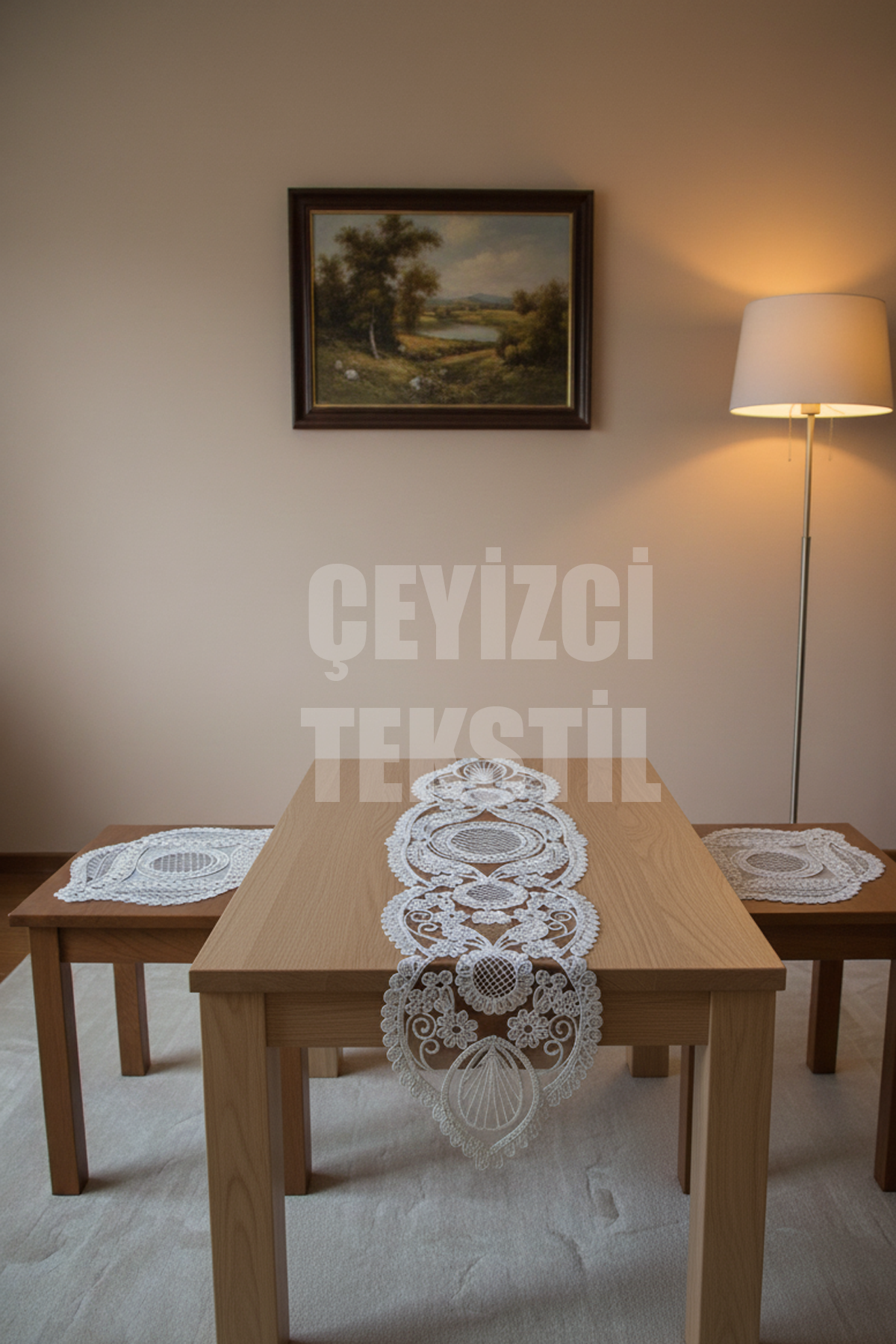 Salon Takımı, Yatak Odası 3 Parça Sehpa Örtüsü, Masa Örtüsü 3 Parça Oda Takımı