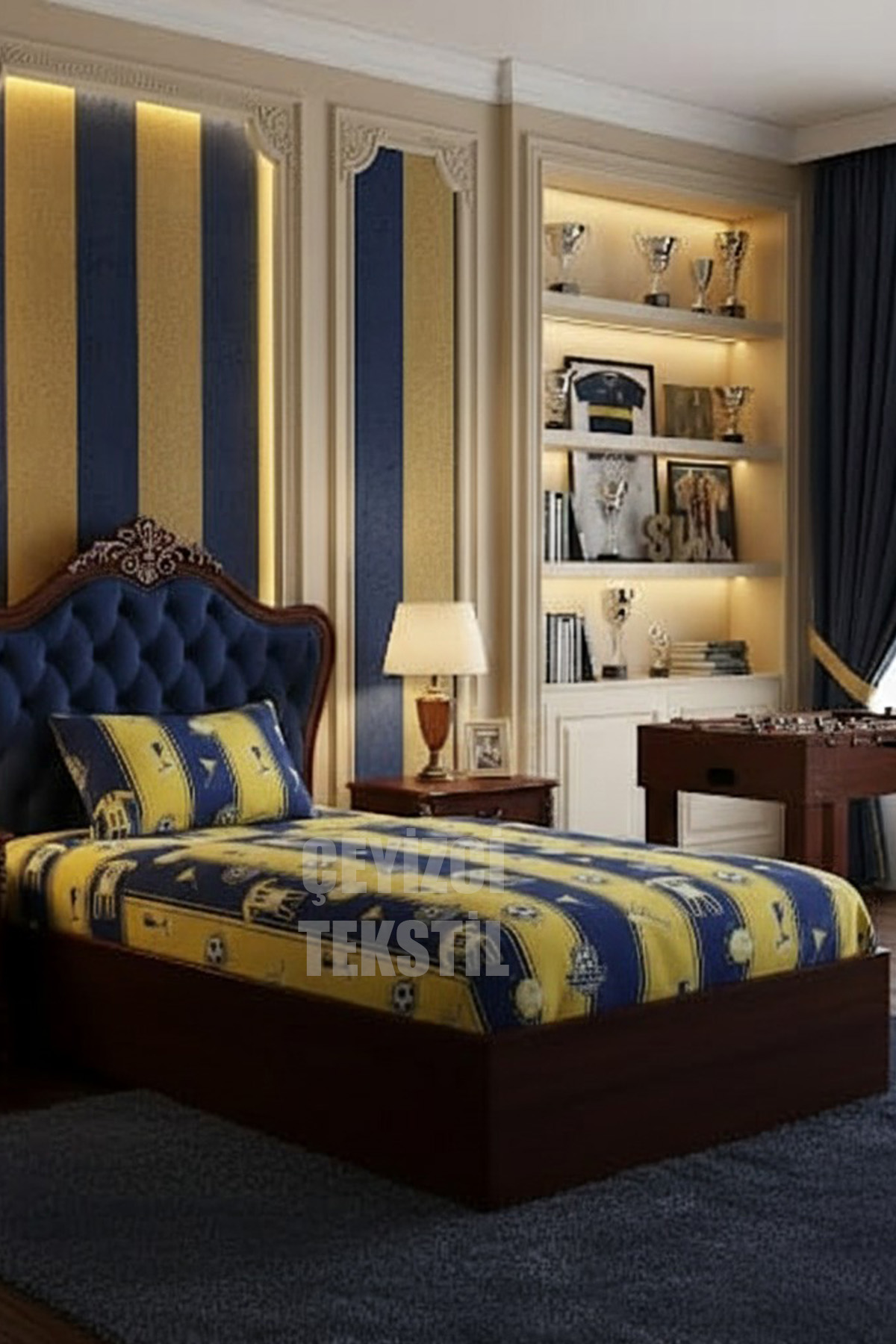 SARI LACİVERT LASTİKLİ ÇARŞAF TAKIMI TEK KİŞİLİK,1 ADET YASTIK KILIFLI