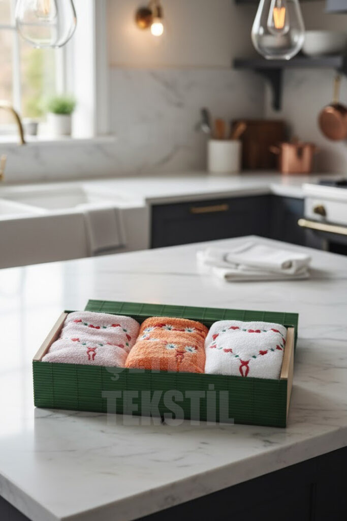 3Lü Mutfak Havlusu Kutulu | Mutfak Havlusu 3lü 30x50cm Kutu Hediyeli
