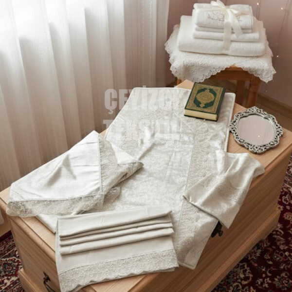 Seccade Seti 4 Parça Ekonomik Çeyizlik Seccade Takımı, Nişan Bohça – Krem