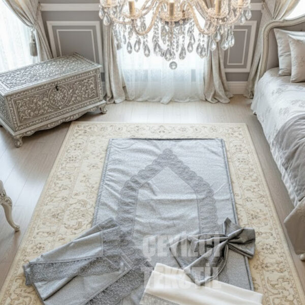 Seccade Seti 4 Parça Ekonomik Çeyizlik Seccade Takımı, Nişan Bohça – Gri