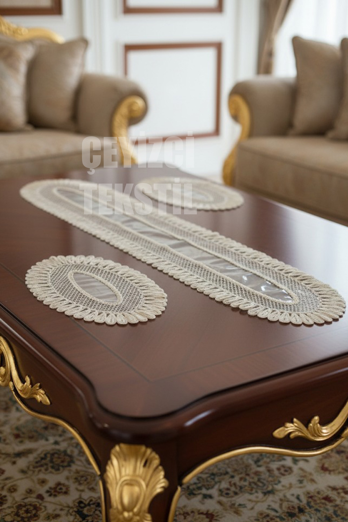 Salon Takımı, Yatak Odası 3 Parça Sehpa Örtüsü, Masa Örtüsü 3 Parça Oda Takımı