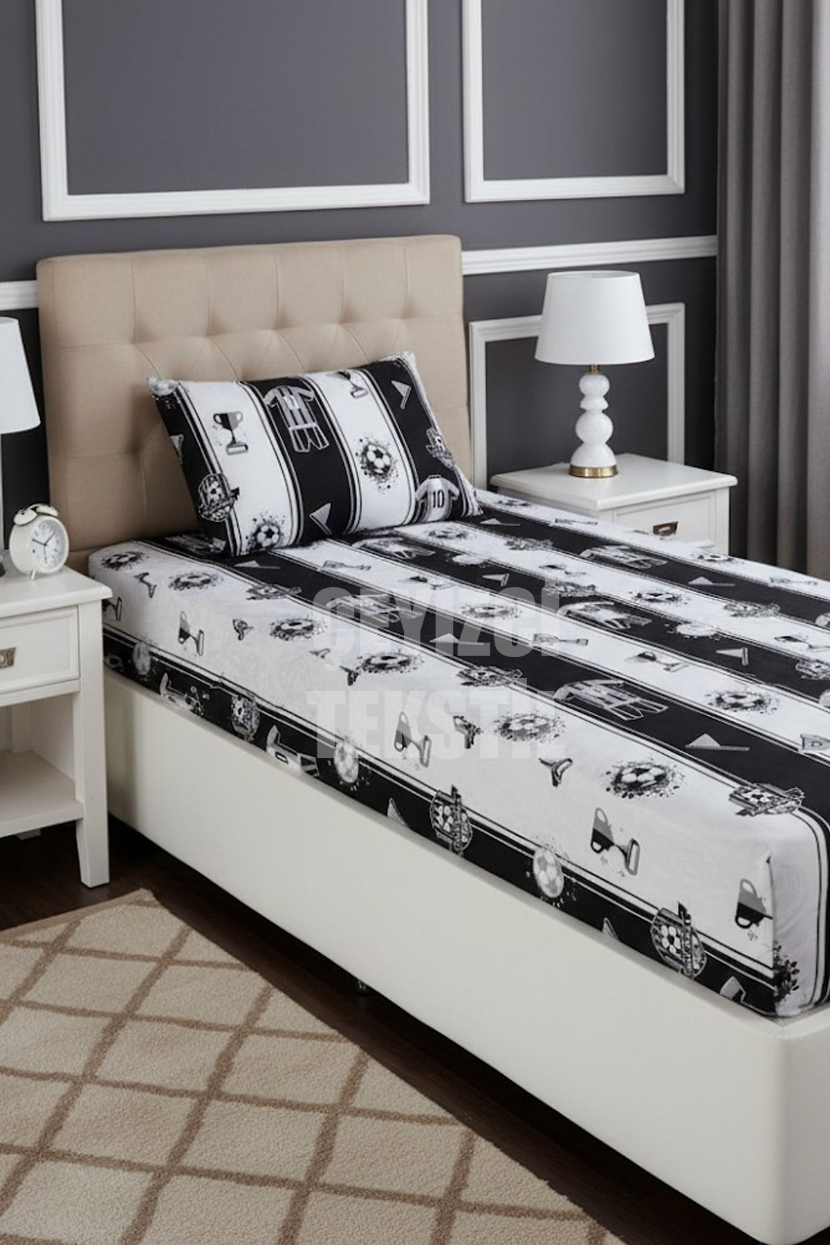 SİYAH BEYAZ LASTİKLİ ÇARŞAF TEK KİŞİLİK