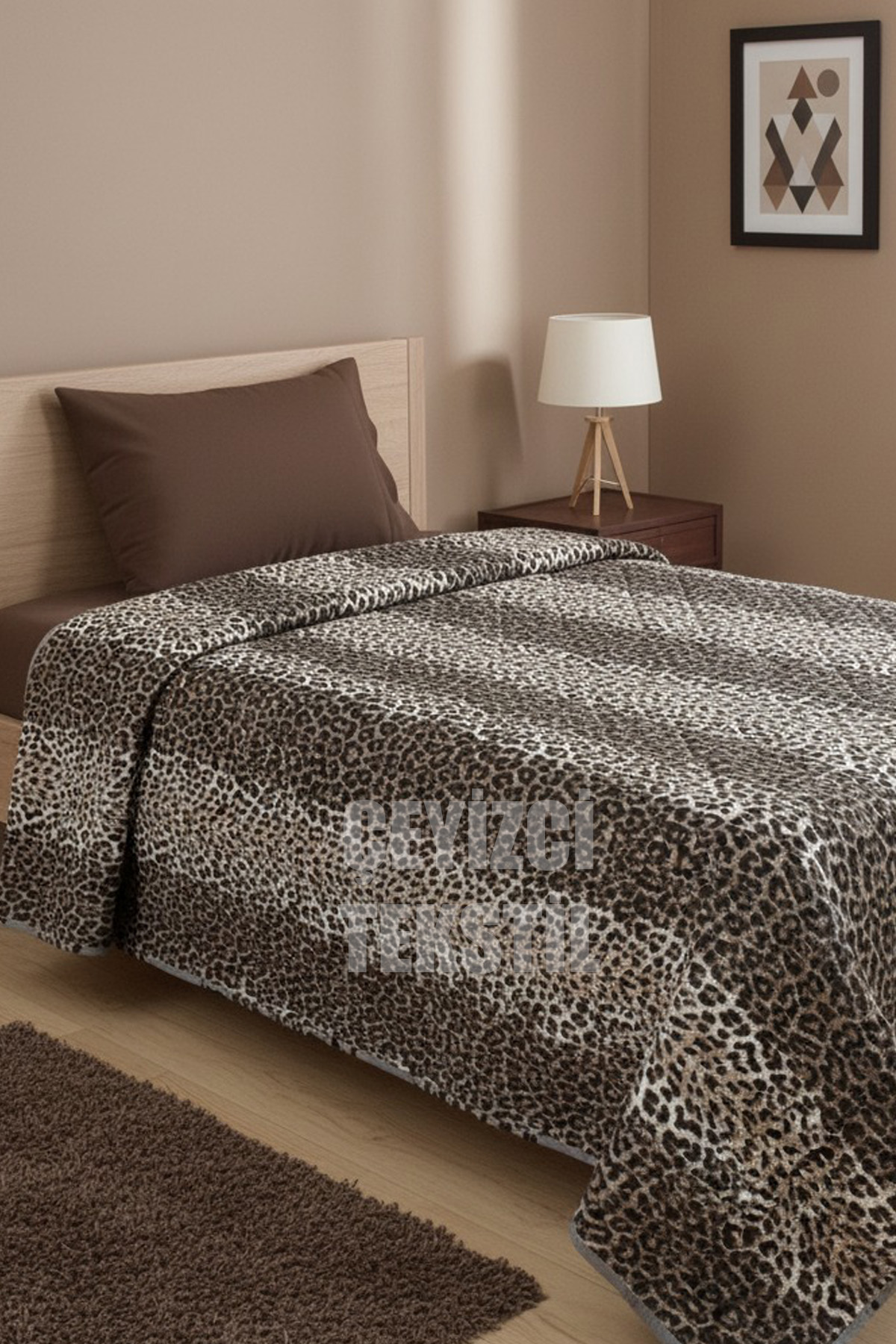 ÖZC - Tek Kişilik Leopar Desen Pamuklu Tek Pike-1