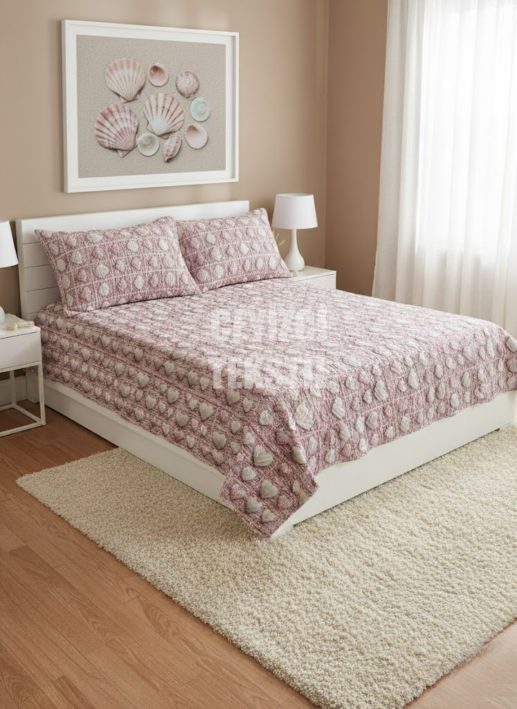 Bade Çift Kişilik Yatak Örtüsü – Pudra