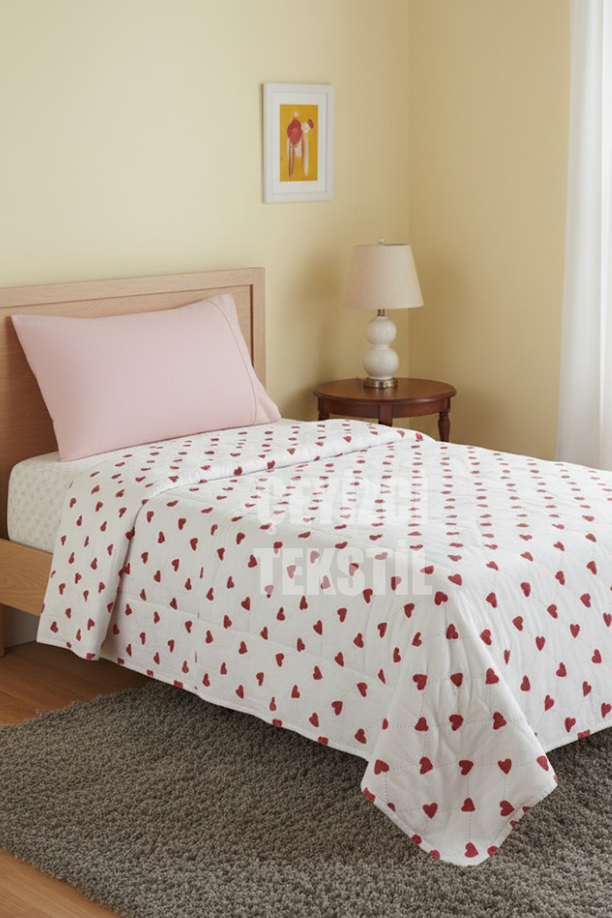 ÖZC - Yazlık Pike Kalp Desen Tek