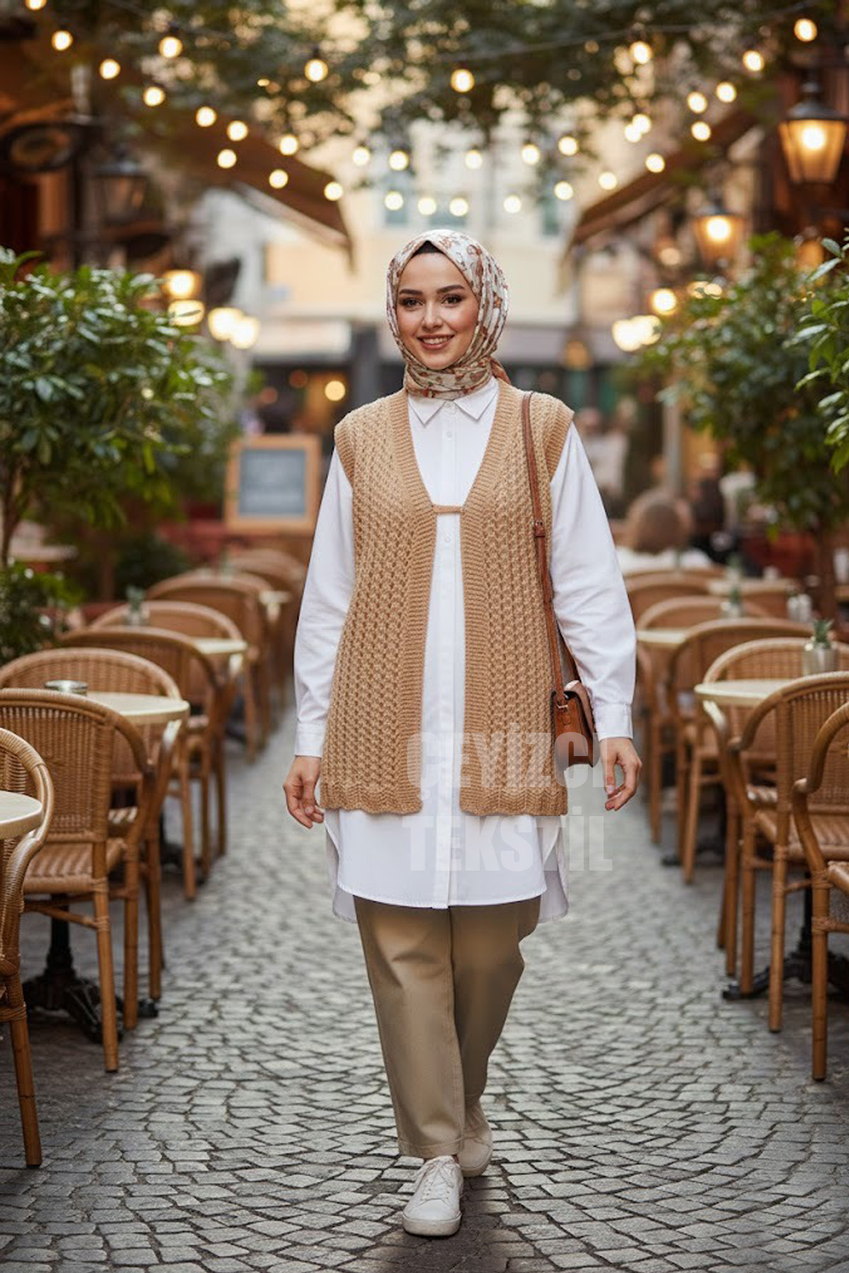 Yelek İpli Çeyizlik Yelek – Gelin Yeleği – Kapuçino