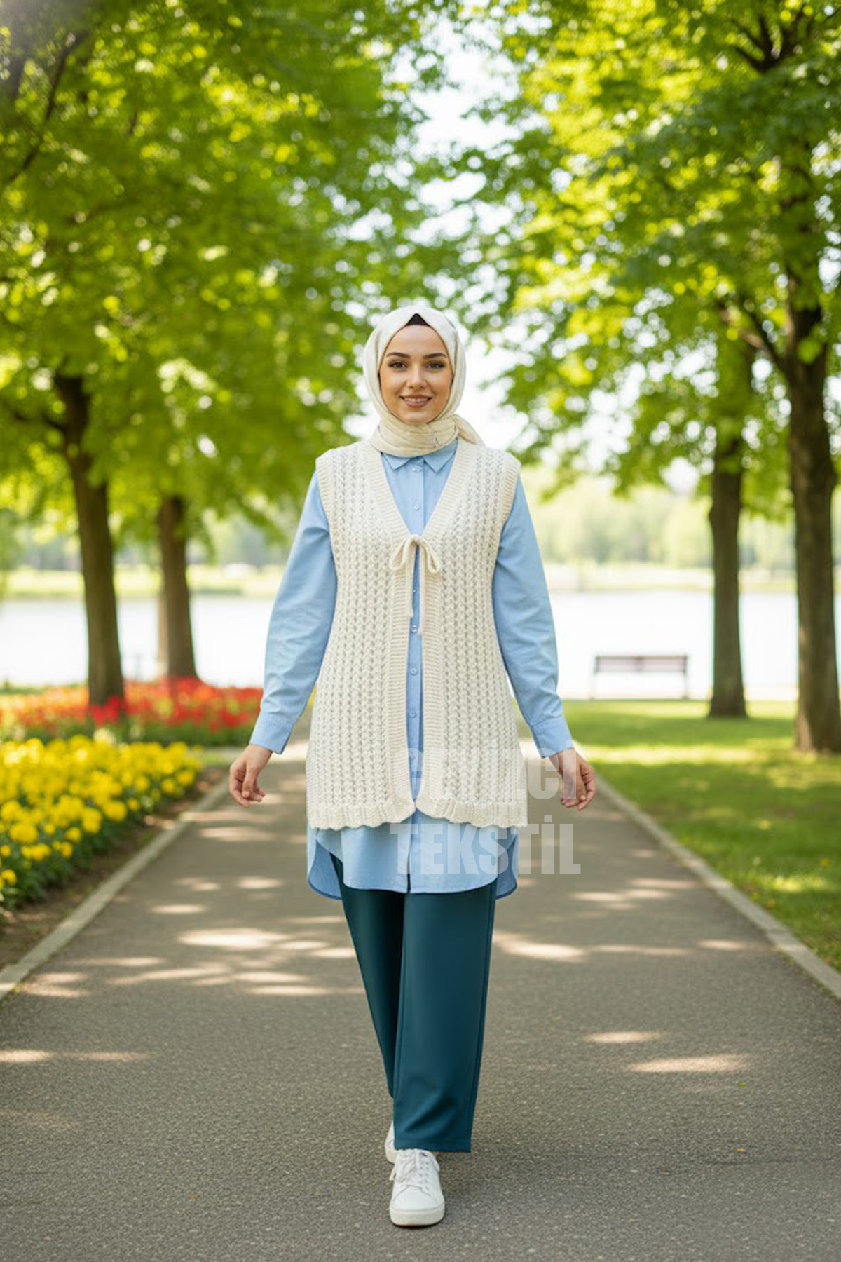 Yelek İpli Çeyizlik Yelek – Gelin Yeleği – Krem
