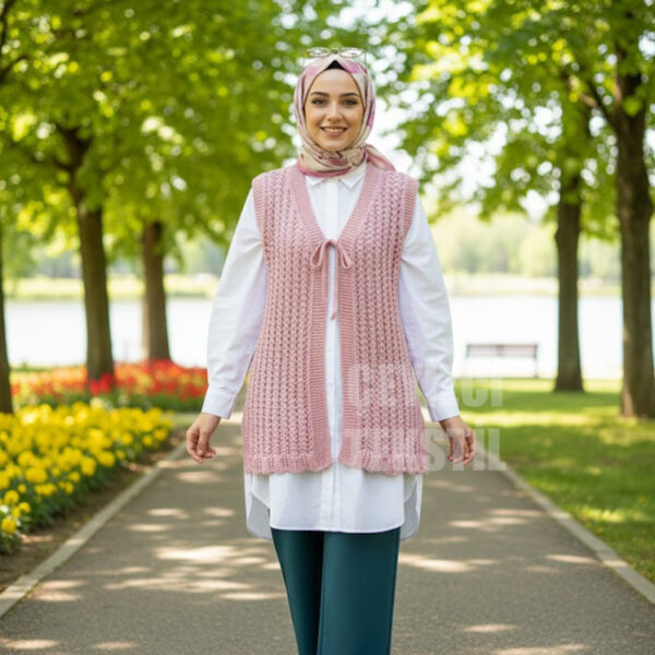 Yelek İpli Çeyizlik Yelek – Gelin Yeleği – Pudra